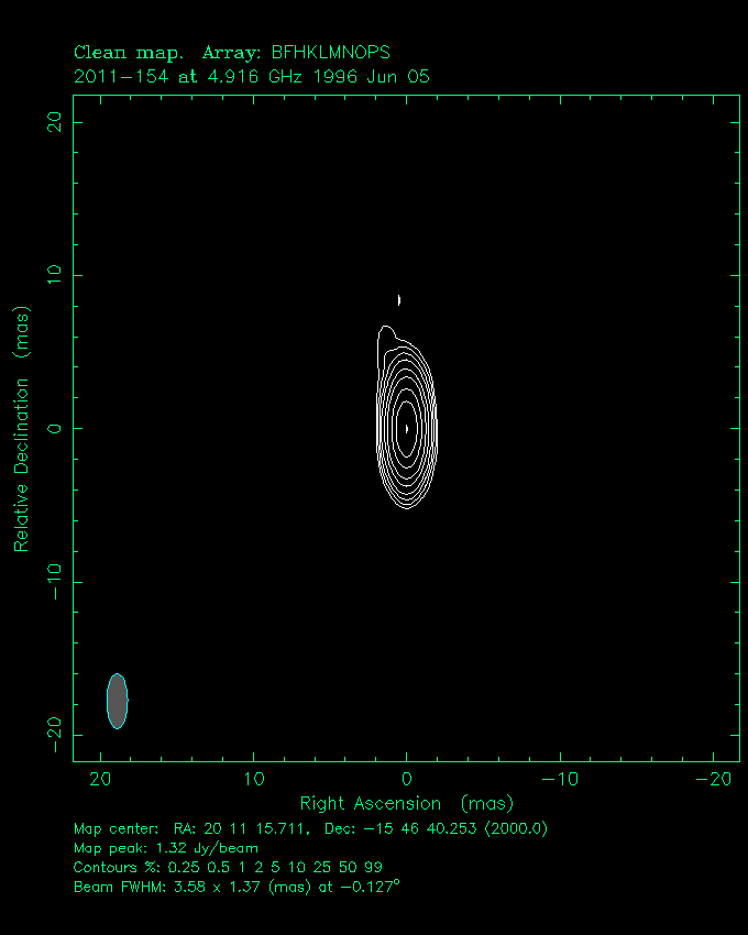 | flux density (Jy) | EW position (mas) | NS position (mas) | major axis (mas) | minor axis (mas) | position angle (°) |