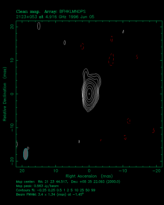| 2121+053 | 21 h 23 m 44.5173 s | + 5 ° 35 ´ 22.093 " | 3.2 Jy | quasar | 1.941 |