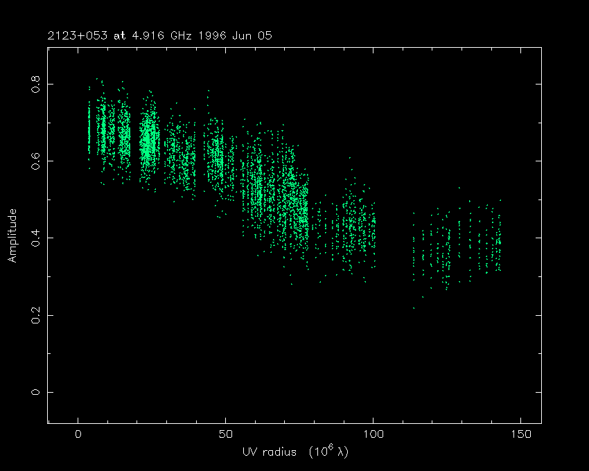 Correlated flux density (Jy) vs. projected baseline length plot