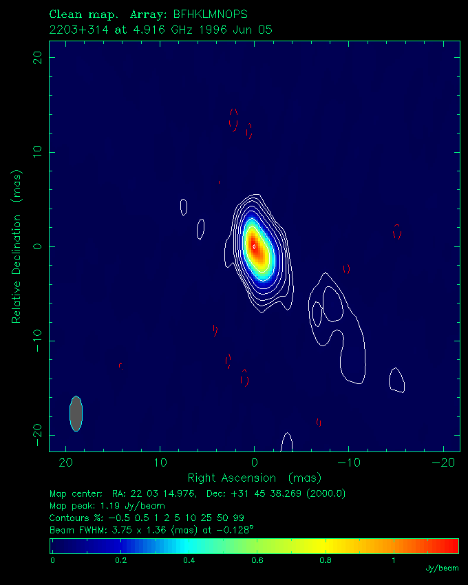 | flux density (Jy) | EW position (mas) | NS position (mas) | major axis (mas) | minor axis (mas) | position angle (°) |