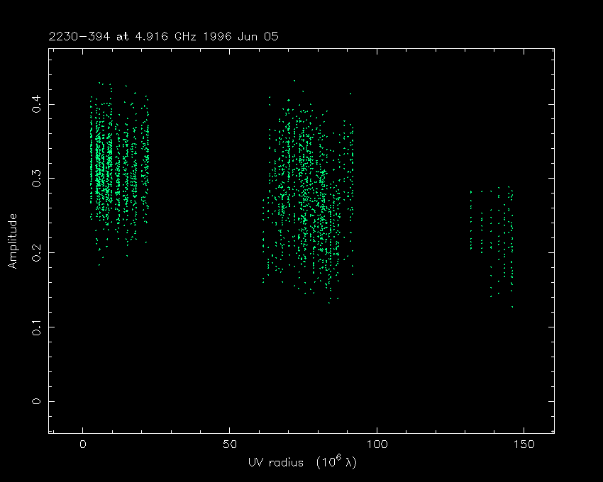 Correlated flux density (Jy) vs. projected baseline length plot
