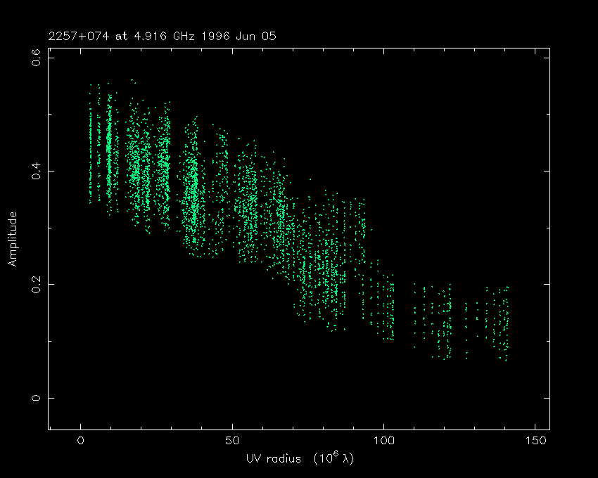 Correlated flux density (Jy) vs. projected baseline length plot