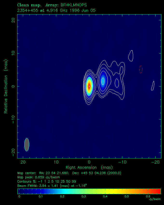| 2351+456 | 23 h 54 m 21.6802 s | + 45 ° 53 ´ 4.236 " | 1.2 Jy | quasar | 1.986 |