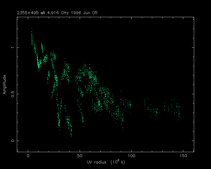 Correlated flux density (Jy) vs. projected baseline length plot